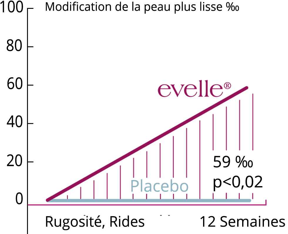 Après 12 semaines, la peau était significativement plus lisse dans le groupe ayant pris Evelle comparé au groupe placebo.